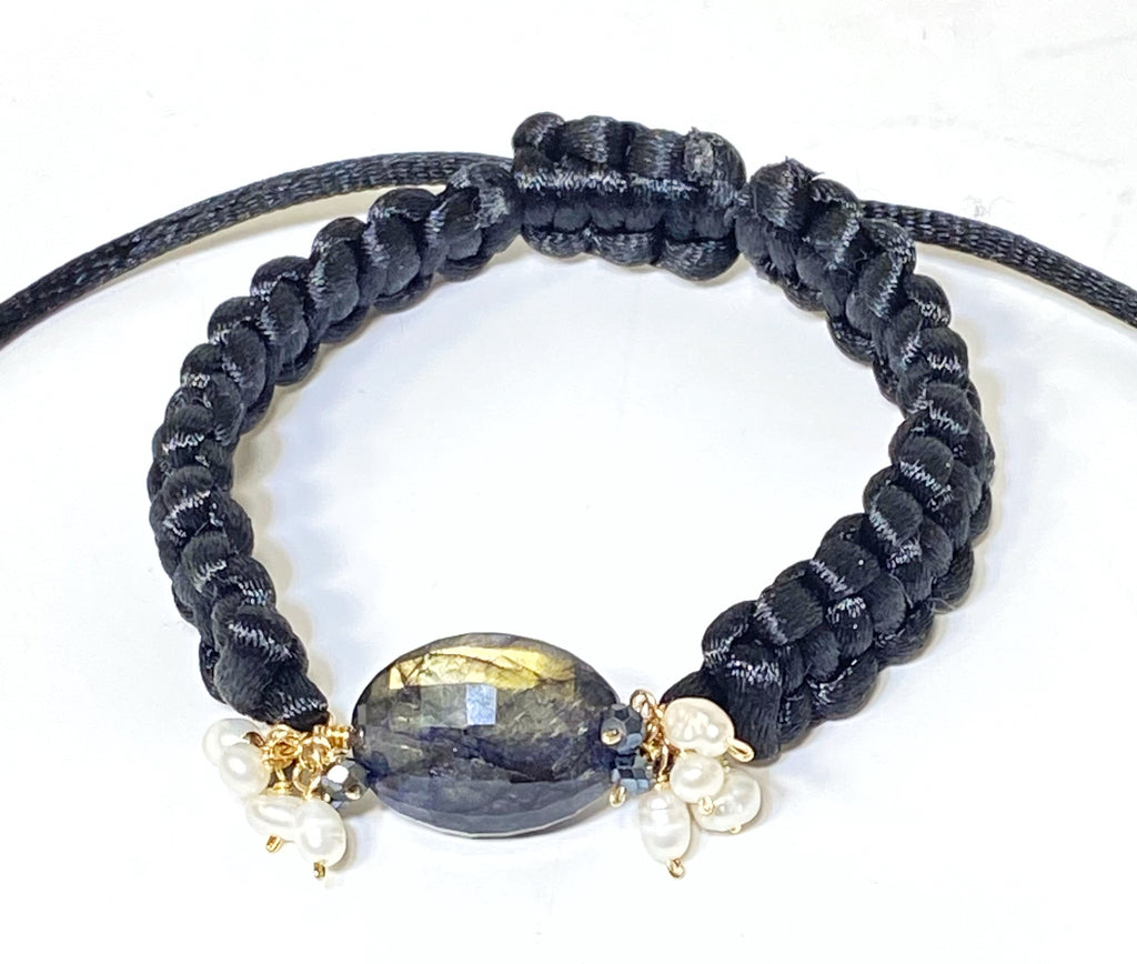 Black Labradorite Knotted Macramé Adjustable Bracelet