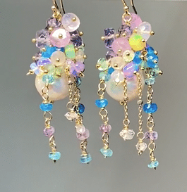 The dangling gemstones and clusters are wire wrapped on 24kt gold vermeil ball headpins and 14kt gold filled wires.