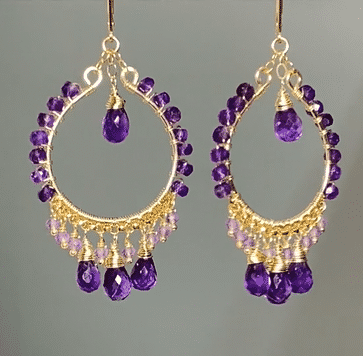 Amethyst Gold Fill Hoop Chandelier Earrings