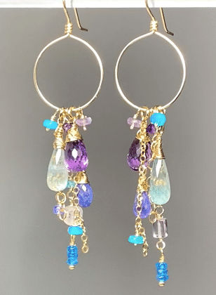 Amethyst Aquamarine Tanzanite Gold Dangle Gold Fill Hoop Earrings