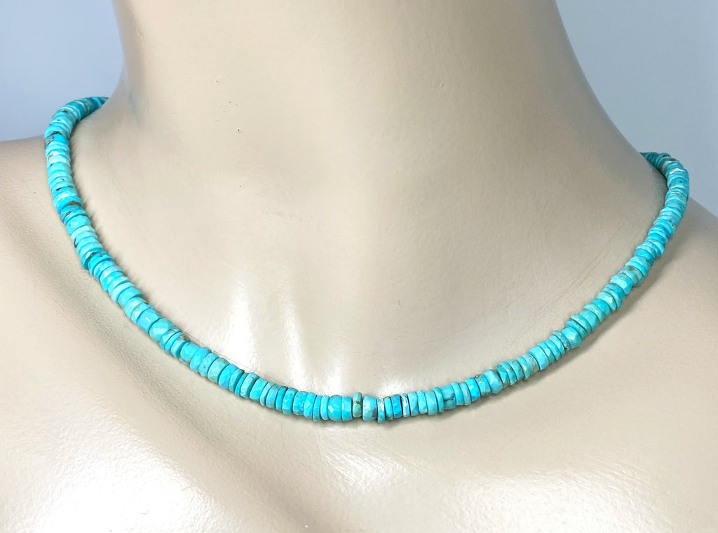 A beautiful, sparkling strand of natural faceted turquoise beads in a light blue shade are strung together to create this elegant necklace.