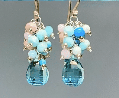 Aqua Quartz Multi Gem Cluster Earrings Mixed Metals