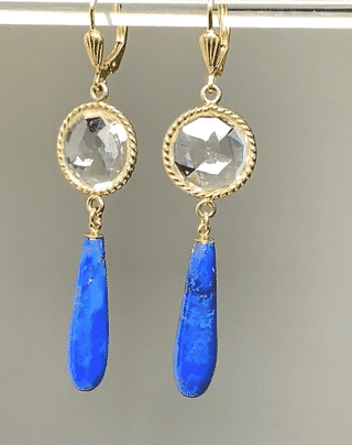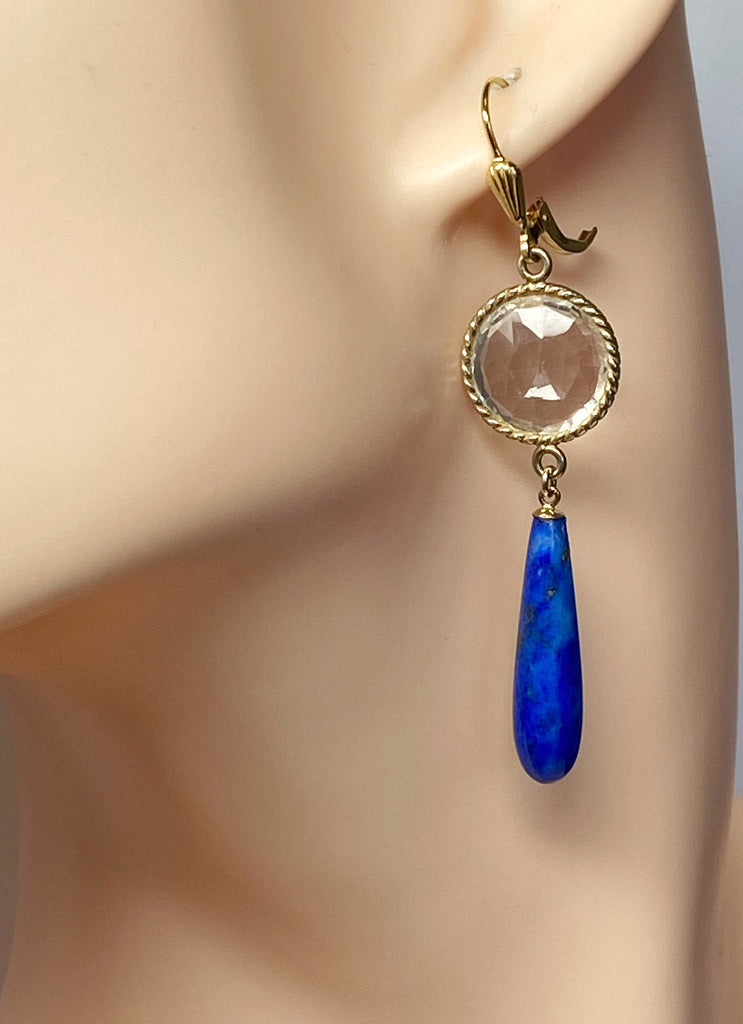 Blue Lapis Long Dangle Earrings with Crystal Quartz