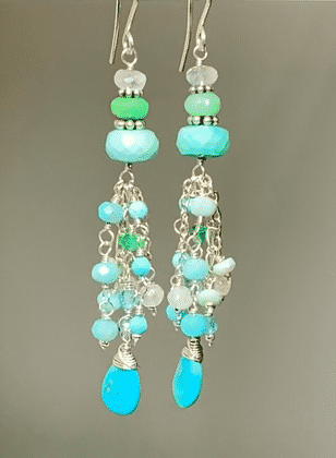 Multi Gemstone Gem Dangle Earrings, Tassel Style, Turquoise, Chrysoprase, Sterling Silver