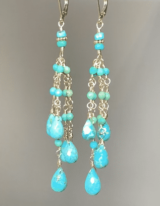 These lightweight boho dangle earrings have lots of movement and are fun to wear! The rich color of the natural turquoise is very glamorous!
