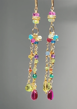 Multi Gemstone Gold Fill Long Dangle Earrings with Peridot, Citrine, Rubellite