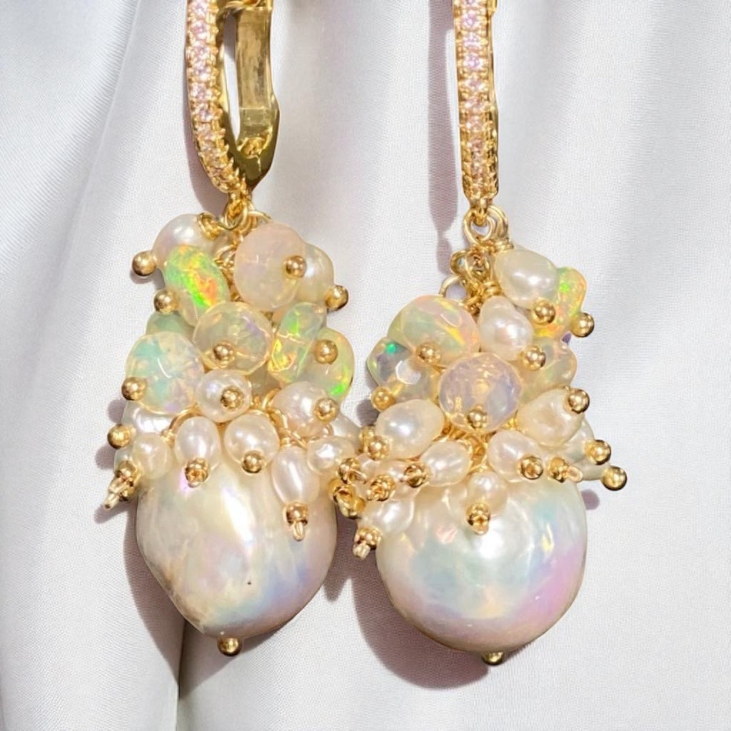 Baroque High Luster Edison Pearl Earrings, Opal Cluster Earrings, Wedding Earrings, Mother of the Bride Groom Earrings, Statement Pearl Earrings for Special Occasions