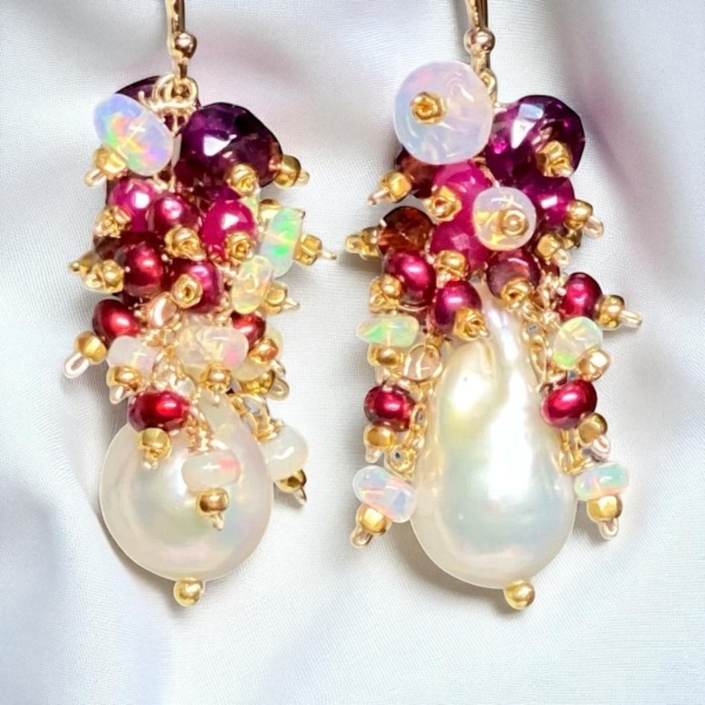 These are NOT your everyday boring pearl earrings! The vivid red rubies and garnets mix well with the lightshow of the fiery opals!