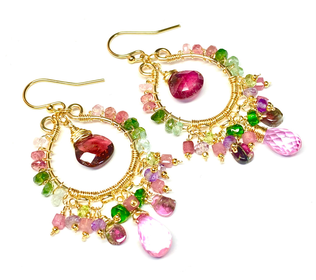 Tourmaline Gemstone Gold Fill Hoop Chandelier Earrings
