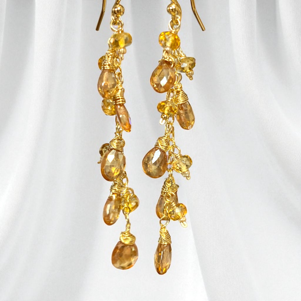 Golden Topaz and Natural Zircon Dangle Earrings Gold Fill 3