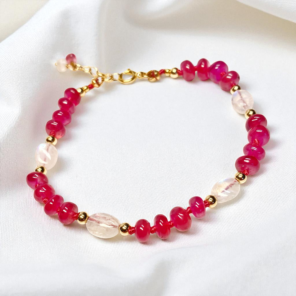 Pink Sapphire and Rainbow Moonstone Silk Knot Bracelet