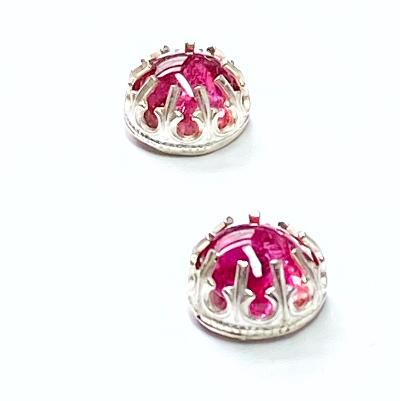 Genuine pink tourmaline cabochon gemstones are set in sterling silver with fancy gallery bezel wire to create these beautiful spring/summer post stud earrings.