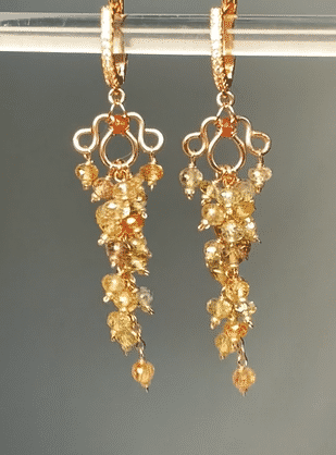 Natural Gemstone Zircon Cluster Dangle Earrings Rose Gold Fill