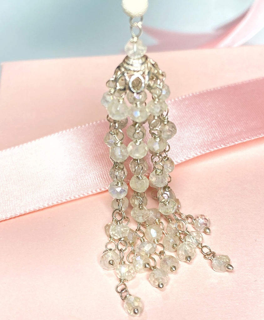 White Tassel Necklace Wire Wrap Sterling Silver Mystic Quartz White Wedding Necklace Handmade Wedding Jewelry Romantic Bohemian Boho Chic