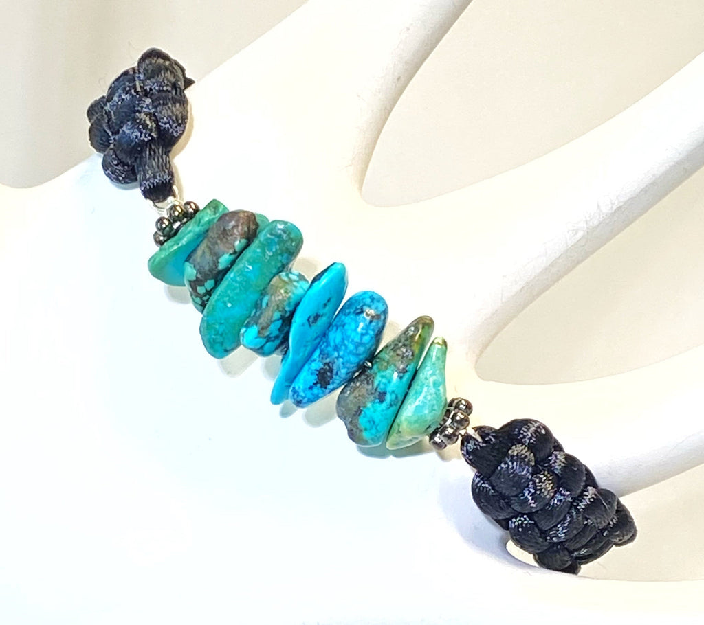 Turquoise Nugget Gemstone Black Macrame Bracelet Boho