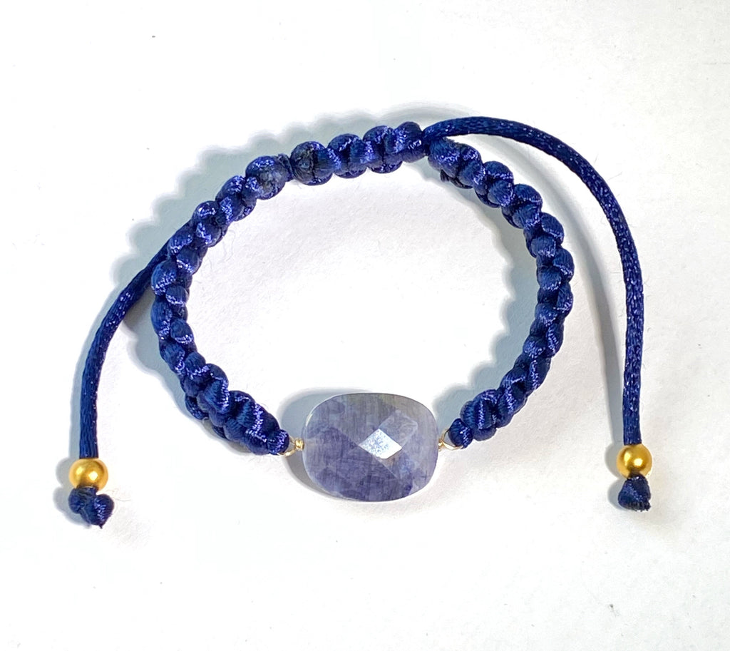 Mystic Blue Sapphire Bracelet Adjustable Navy Blue Macramé