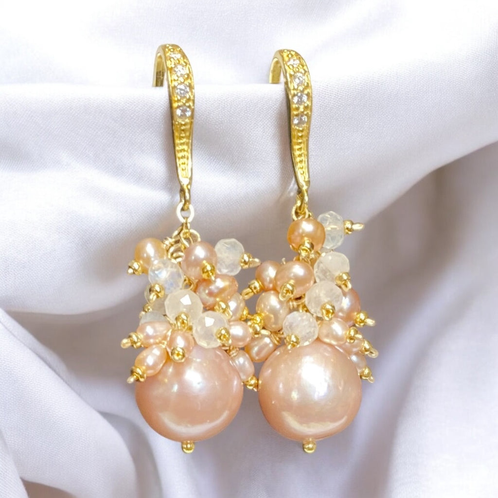 Blush Pink Edison Pearl Cluster Earrings Gold Fill