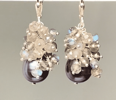 Black Pearl Labradorite Cluster Earrings in Sterling Silver