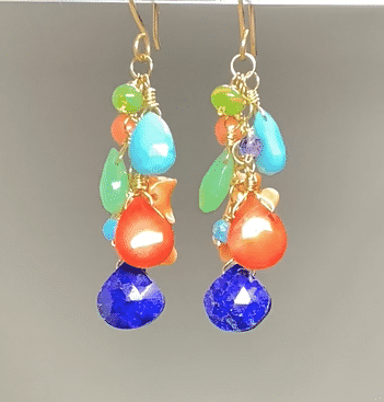 Multi Gemstone Gold Dangle Earrings Coral Blue Lapis Turquoise