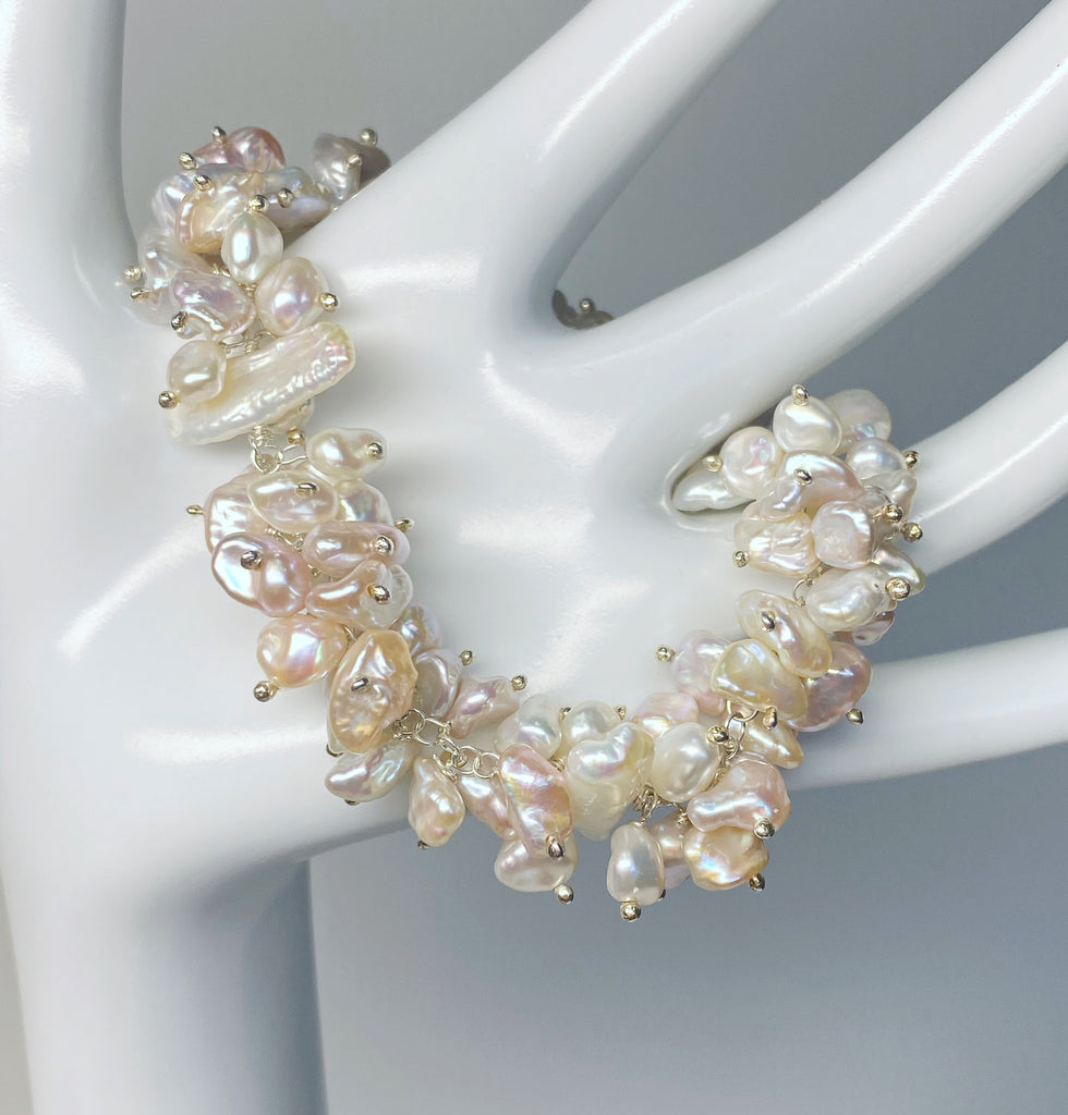 Blush lustrous keishi and stick pearls combine with sterling silver to create this super feminine bracelet. While perfect for a wedding, you don't have to be a bride to wear this every day if you wish!